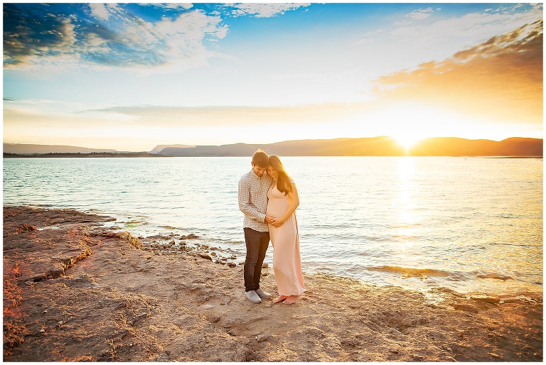 This maternity session gives me all the feels! We chose a scenic water location at sunrise and it did NOT disappoint. Maigan and Kyle were such troopers for waking up so early to beat the heat. Although we still had a little hiccup in the middle, Maigan had a little fainting moment. Luckily, her husband and the lake water helped her fall. That was the first time I’ve ever had anyone pass out at a shoot. I was so glad mama and baby were okay! (I just took their newborn photos not to long ago). It was still a little toasty outside so we made sure to take more water breaks and rest more often. The photos turned out very beautiful. The sky at sunrise had amazing and vibrant colors (one of the many pros of shooting that early).