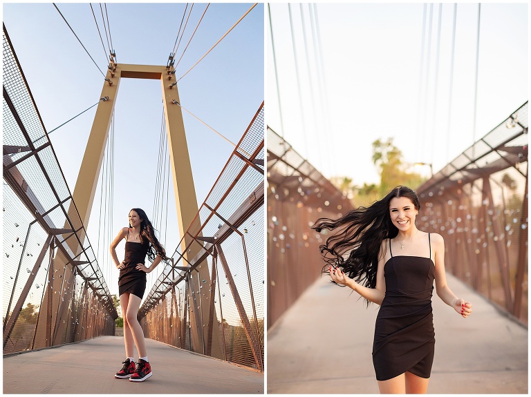 For this session, I had a senior who had one location she had in mind for her photos. I had never shot at this industrial bridge before, but I was willing to give it a shot. I didn’t know how the lighting would turn out exactly, but I was very impressed. The lighting was fun to work with along with my fun senior client. Typically for a senior shoot, I asked if they want to bring any props to take photos with. Usually they bring something sports related or having to do with their hobbies, but this lovely senior wanted to show off her fabulous red shoes.